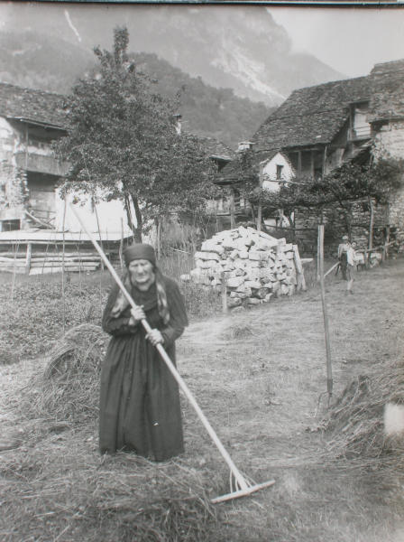 Donna con rastrello alla raccolta del fieno (1920 - 1930)